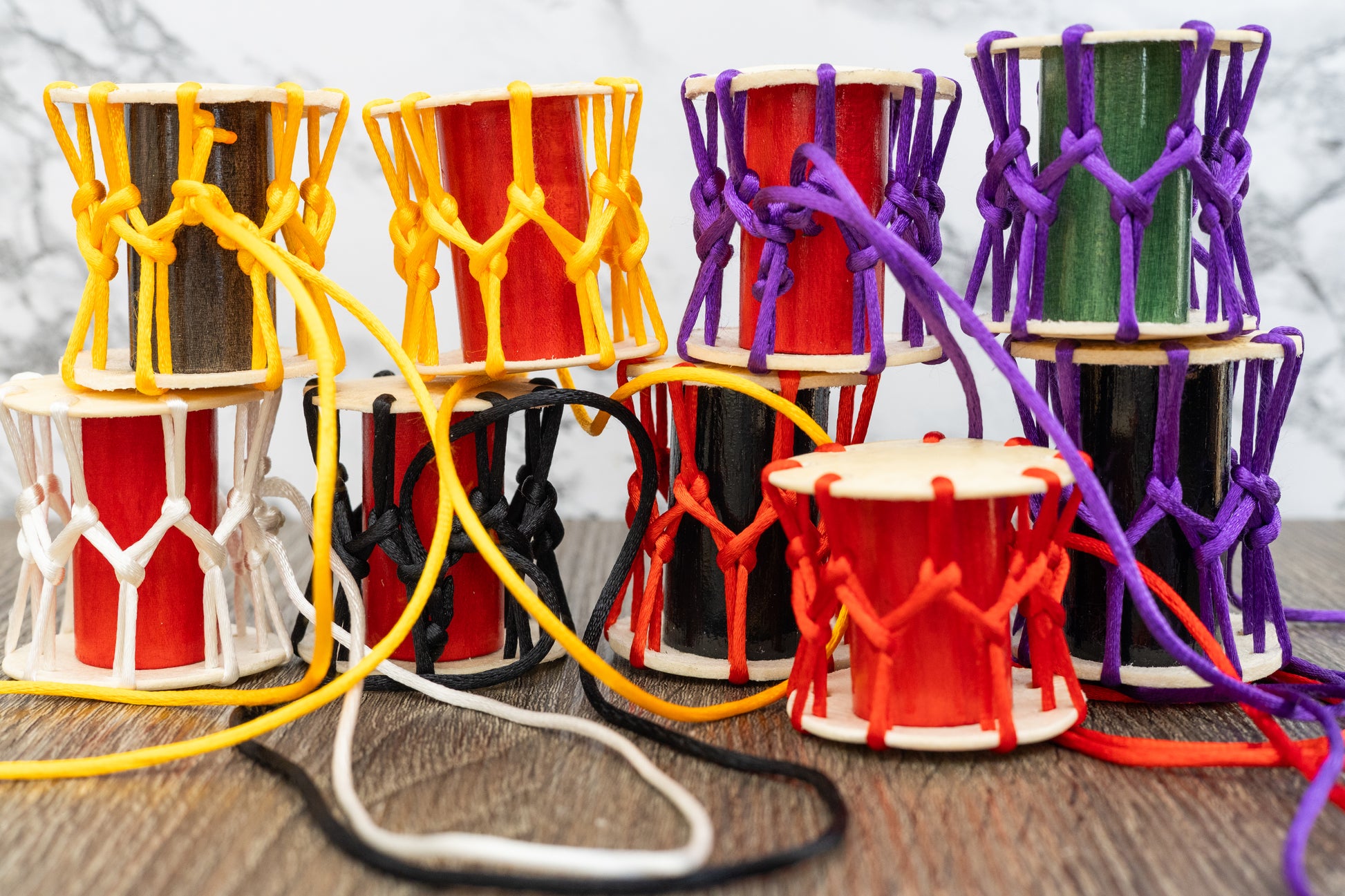 Add a little taiko flair to your bachi bag or other gear. I use real rawhide recycled from worn out taiko heads and extra pieces from making bachi for the little okedo body.